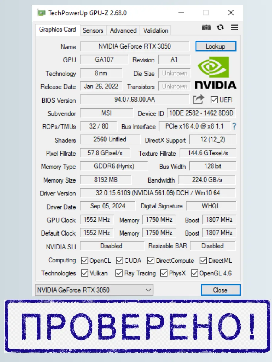 Дисконтный товар - нет оригинальной упаковки, нет диска с драйверамиMSI RTX3050 VENTUS 8G OC — это мощная игровая видеокарта, которая позволит вам погрузиться в мир современных игр с потрясающей графикой. С 8 Гб GDDR6 видеопамяти и 128-битной шиной памяти, эта карта обеспечит плавную работу даже в самых требовательных играх. Поддержка DirectX 12 Ultimate и DLSS 2.0 гарантирует реалистичное изображение и высокую производительность. MSI RTX3050 VENTUS 8G OC оснащена одним портом DVI-D, одним портом DisplayPort и одним HDMI, что позволяет подключить ее к различным мониторам. Эта видеокарта станет отличным выбором для геймеров, которые хотят получить максимальное удовольствие от своих любимых игр.