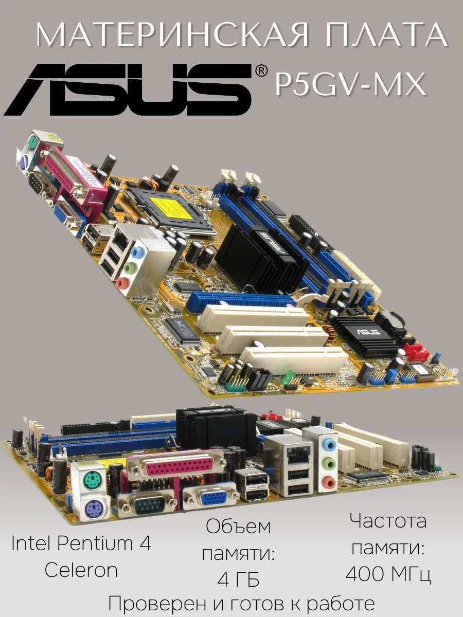 Материнская плата ASUS P5GV-MX — надежный компонент для вашей сборки, который поможет вам создать мощный и стабильный компьютер. Эта плата от известного бренда, хотя и не имеет собственного наименования, обладает всеми необходимыми характеристиками для выполнения повседневных задач и даже для более требовательных приложений. Независимо от того, собираете ли вы систему для работы, учебы или развлечений, ASUS P5GV-MX предоставит вам стабильную платформу для всех ваших нужд.