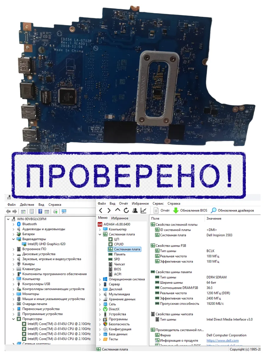 Материнская плата Dell Inspirion 3000/3583 La-G712P — это надежный компонент для модернизации или ремонта вашего ноутбука. Эта материнская плата, разработанная для ноутбуков Dell Inspirion 3000/3583, оснащена двумя слотами оперативной памяти SODIMM DDR4, что позволяет вам увеличить объем оперативной памяти для более плавной работы приложений. Наличие встроенного процессора обеспечивает высокую производительность, а один разъем M.2 позволяет установить быстрый SSD-накопитель для ускорения загрузки системы и программ.