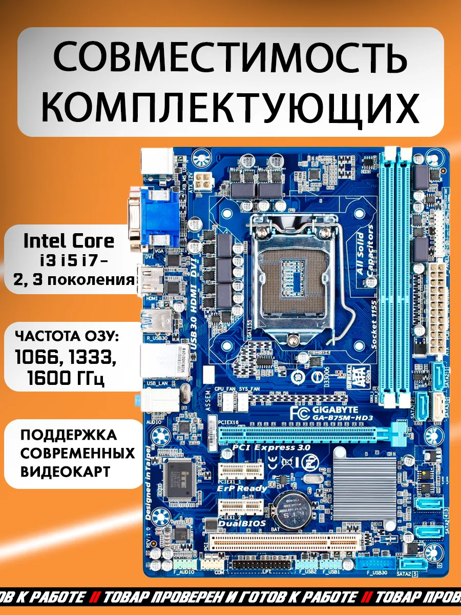Представляем вам надежную и функциональную материнскую плату Gigabyte GA-B75M-HD3, которая станет отличным выбором для сборки вашего нового компьютера. Эта плата с форм-фактором Micro-ATX идеально подходит для компактных систем, не уступая при этом в производительности. Gigabyte GA-B75M-HD3 оснащена сокетом LGA 1155, поддерживающим процессоры Intel второго и третьего поколений, что даёт вам возможность выбрать оптимальный вариант для ваших задач. С двумя слотами для оперативной памяти DDR3 вы сможете установить до 16 ГБ RAM, обеспечивая плавную работу даже ресурсоёмких приложений. Для подключения накопителей предусмотрены шесть портов SATA, а для видеовывода - DVI-D, HDMI и VGA. Gigabyte GA-B75M-HD3 также предлагает вам широкий спектр портов USB, включая четыре порта USB 2.0 и два порта USB 3.0 для быстрой передачи данных. С двумя слотами PCI-E x1 и одним PCI-E x16 вы сможете установить необходимые расширения, такие как видеокарты, звуковые карты или сетевые адаптеры. Gigabyte GA-B75M-HD3 - это отличный выбор для тех, кто ищет надежную и функциональную материнскую плату по доступной цене.