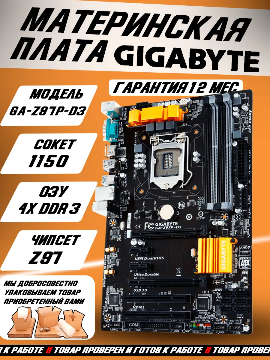 Материнская плата GA-Z97P-D3 – это надежная основа для сборки мощного и производительного компьютера. Основанная на чипсете Z97, она поддерживает процессоры Intel с сокетом 1150, обеспечивая высокую производительность для любых задач. Четыре слота для оперативной памяти DDR3 типа DIMM позволяют установить до 32 ГБ ОЗУ, что гарантирует плавную работу даже ресурсоемких приложений. Для подключения накопителей предусмотрены шесть портов SATA, а два слота PCI-E x16 и два PCI-E x1 позволяют установить мощные видеокарты и другие расширения.