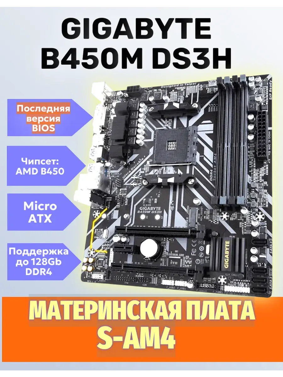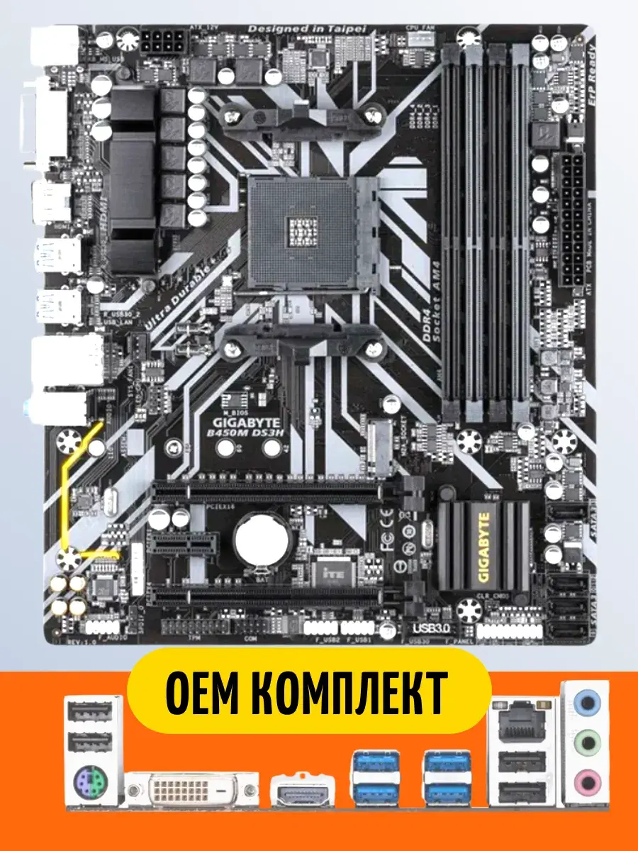 Материнская плата Gigabyte GA-B450M DS3H (OEM комплектация, плата, задняя планка, антистатический пакет, без фирменной коробки) — это надежная основа для сборки производительного компьютера. Сокет AM4 поддерживает процессоры AMD Ryzen, а поддержка DDR4 памяти до 128 ГБ обеспечит высокую скорость работы. Четыре слота для оперативной памяти DIMM позволяют расширить ее объем по мере необходимости. Форм-фактор Micro-ATX позволяет собрать компактный компьютер, не жертвуя при этом производительностью. С материнской платой Gigabyte GA-B450M DS3H OEM вы можете собрать компьютер, который справится с любыми задачами, от работы и учебы до игр и развлечений.