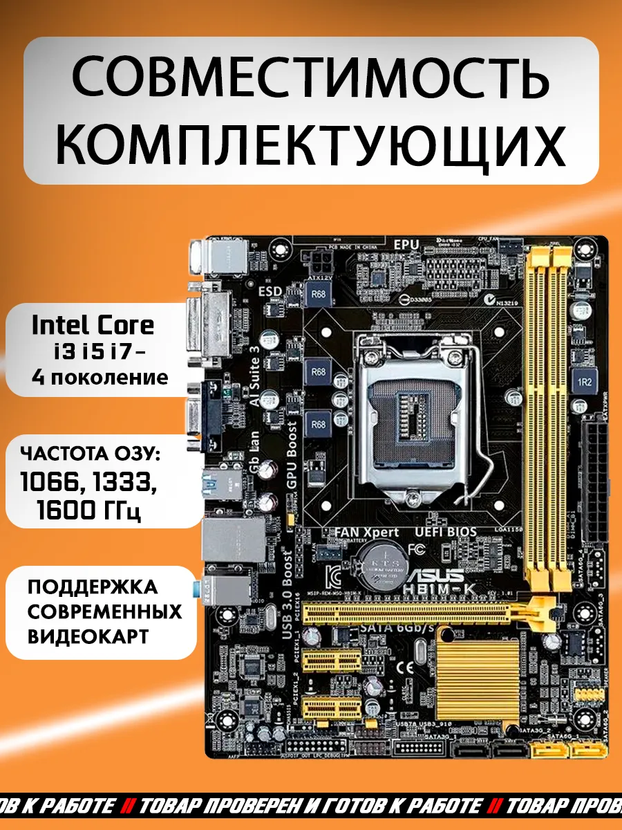Представляем вам надежную и производительную материнскую плату Asus H81M-K LGA 1150 DDR3, которая станет отличным выбором для сборки вашего ПК. Эта модель, выполненная в формате Micro-ATX, идеально подойдет для компактных корпусов, не жертвуя при этом функциональностью. Asus H81M-K LGA 1150 DDR3 поддерживает процессоры Intel сокетом LGA 1150, что открывает широкие возможности для выбора оптимального решения для ваших задач. Вы сможете установить до 16 ГБ оперативной памяти DDR3, что обеспечит плавную работу даже ресурсоемких приложений. Для подключения периферии предусмотрены два порта USB 2.0, два порта USB 3.0, а также порты DVI-D, HDMI и VGA, что позволит вам подключить монитор или телевизор по вашему выбору. Наличие четырех портов SATA позволит подключить несколько накопителей, а два слота PCI-E x1 и один PCI-E x16 дадут возможность расширить функциональность вашего компьютера. Asus H81M-K LGA 1150 DDR3 - это надежная основа для сборки компьютера, который будет радовать вас своей производительностью и стабильностью.