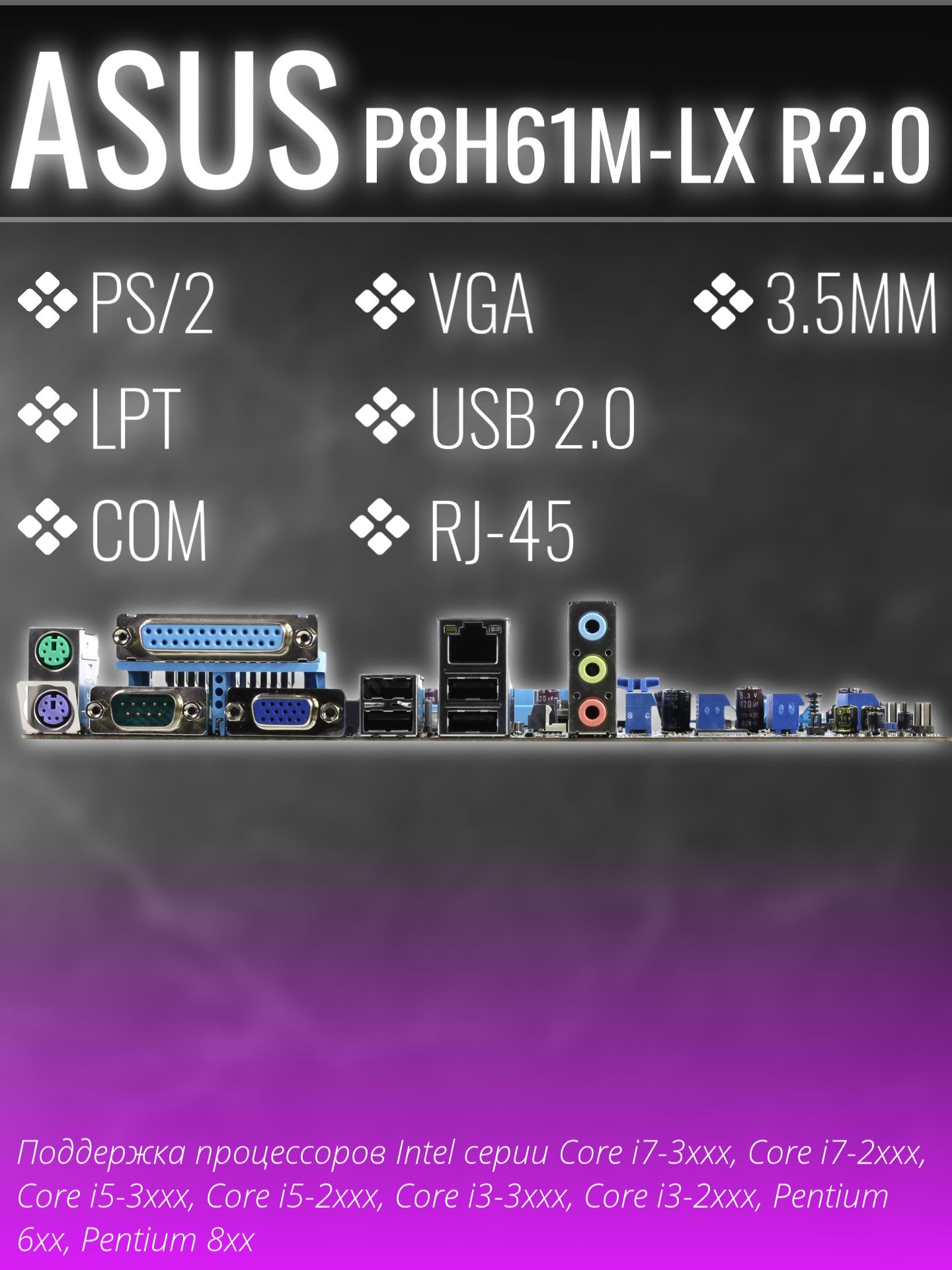 Материнская плата LGA1155 ASUS P8H61-M LX R2.0 - идеальное решение для сборки надежной и производительной системы. Она отличается высоким качеством сборки и поддерживает процессоры с разъемом LGA1155.
