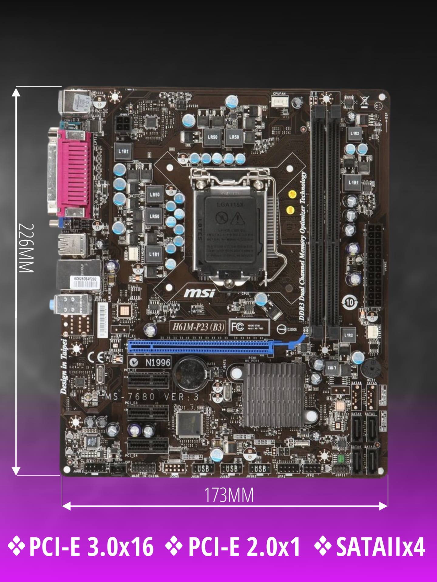Материнская плата MSI H61M-P23 предназначена для сборки как офисного, так и игрового ПК. Она обладает поддержкой многоядерных процессоров от Intel и возможностью установки оперативной памяти объемом до 16 Гб. Данная модель выполнена в форм-факторе Micro-ATX.