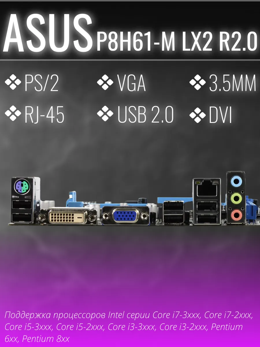 Представляем вам надежную и производительную материнскую плату Asus P8H61-M LX2 R2.0 LGA 1155, которая станет отличным выбором для сборки или модернизации вашего компьютера. Эта плата, выполненная в компактном форм-факторе Micro-ATX, идеально подойдет для систем, где важна экономия пространства. Asus P8H61-M LX2 R2.0 LGA 1155 поддерживает процессоры Intel с сокетом LGA 1155, что открывает вам доступ к широкому выбору мощных CPU. Вы сможете установить до 16 ГБ оперативной памяти DDR3, что обеспечит плавную работу даже самых требовательных приложений. Для подключения периферийных устройств предусмотрены 6 портов USB 2.0, а также порты VGA, DVI и RJ-45 для подключения монитора, проектора и сетевого кабеля.