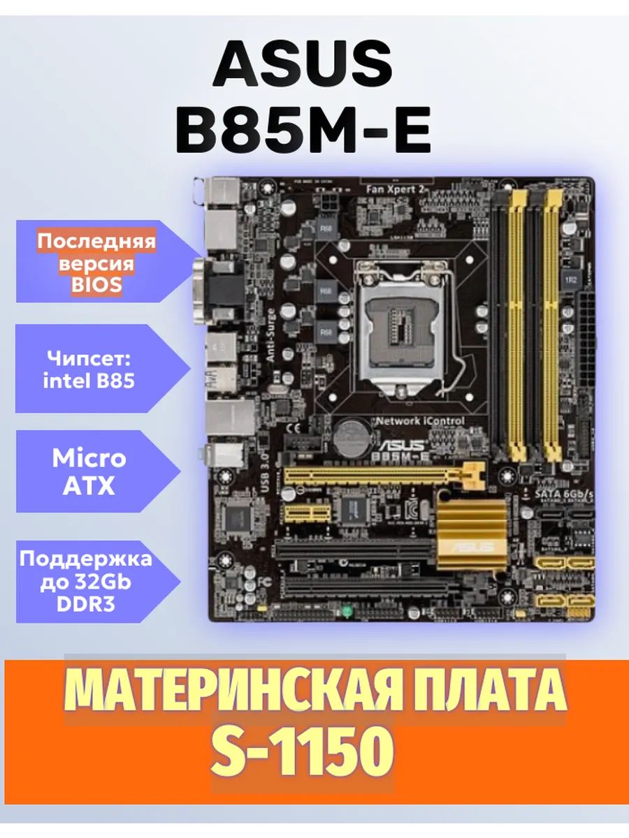Материнская плата ASUS B85M-E – это надежная основа для сборки производительного компьютера. Сокет 1150 поддерживает процессоры Intel 4-го поколения, а четыре слота для оперативной памяти DDR3/DDR3L с максимальным объемом 32 ГБ обеспечат плавную работу даже ресурсоемких приложений. Форм-фактор Micro-ATX позволяет компактно разместить все компоненты в корпусе. ASUS B85M-E – отличный выбор для тех, кто ищет баланс между производительностью и компактностью.