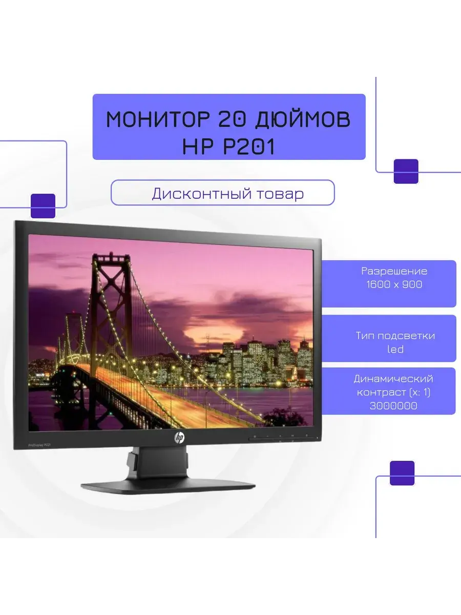 Монитор HP P201 - Ваш идеальный выбор для работы и отдыхаОсновные характеристики:- Диагональ экрана: 20 дюймов