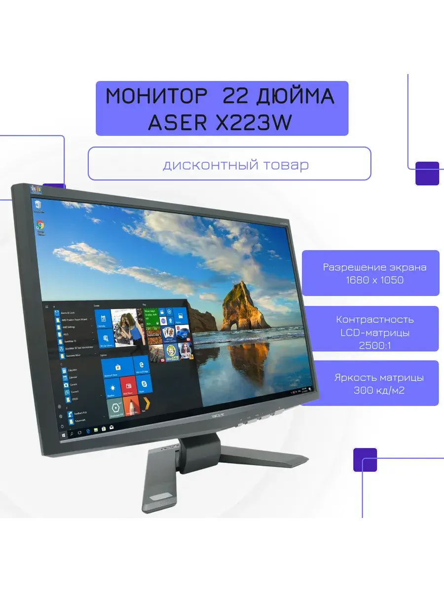 22” широкоформатный ЖК монитор X223W отличается большой площадью дисплея, высоким разрешением, яркой и контрастной матрицей, а также элегантным и стильным корпусом. Модель X223W предназначена для решения практически любых задач – от работы с текстовыми файлами и электронными таблицами до просмотра широкоформатного видео высокой четкости.