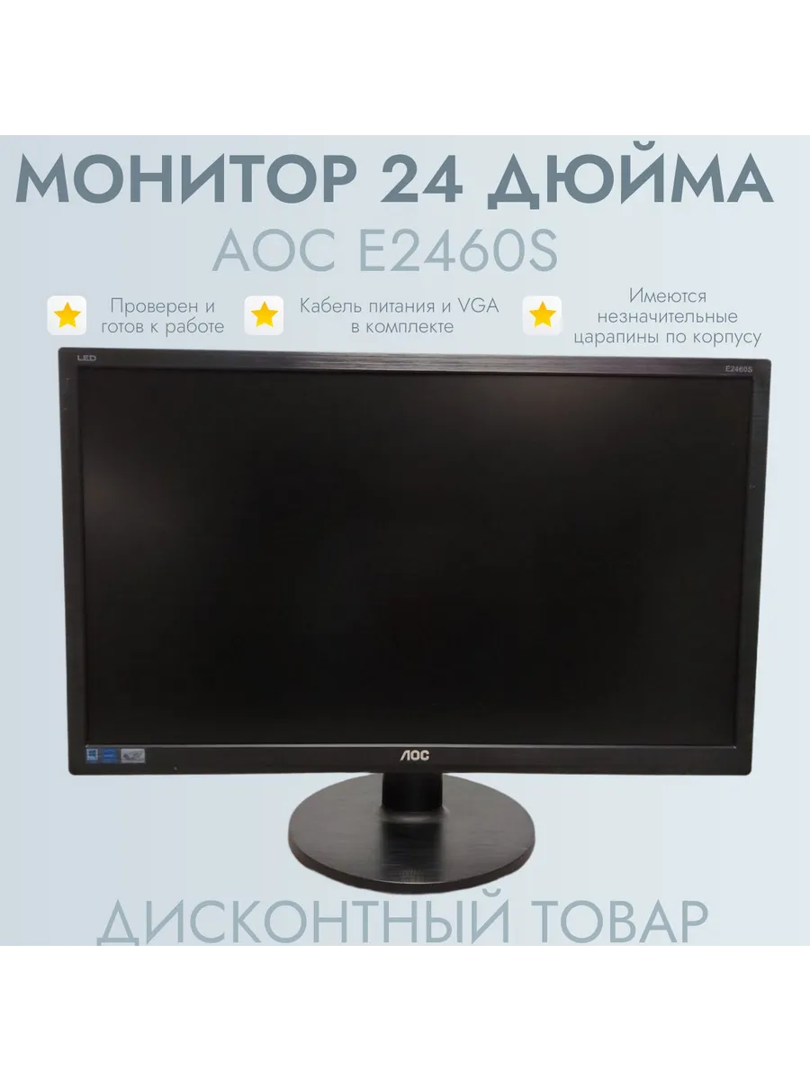 Откройте новые возможности с монитором 24" AOC E2460S! Высокое разрешение Full HD (1920x1080), быстрая реакция времени отклика всего 0,5 мс обеспечат комфорт во время работы и развлечений. Антивоздушные блики антибликованного покрытия создадут удобство при любом освещении. Контрасты 20 млн подчеркнут детали изображения. Подключение через разъемы VGA/DVI сделает использование удобным и простым – это ваш идеальный выбор по доступной цене!