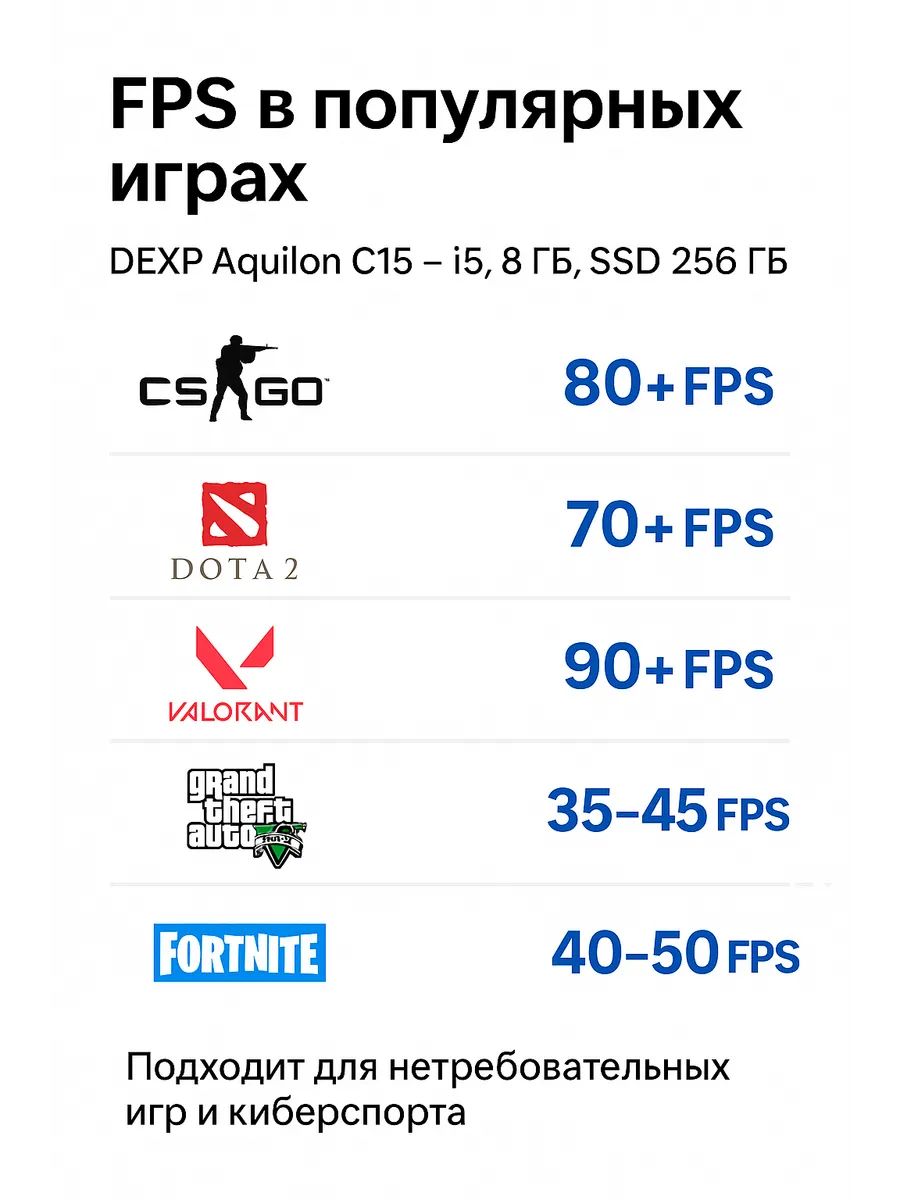 Ноутбук DEXP Aquilon C15 — это ваш надёжный партнёр в мире технологий, который объединяет стильный дизайн, мощную производительность и высокую функциональность. Оснащённый четырёхъядерным процессором Intel Core i5-1035G1 с тактовой частотой до 3.6 ГГц и 8 ГБ оперативной памяти DDR4, этот ноутбук C15 i5 легко справляется с любыми офисными задачами, учёбой и развлечениями. Благодаря SSD на 256 ГБ вы получите быстроту загрузки системы и приложений, что значительно повысит вашу продуктивность.С экраном диагональю 15.6 дюймов и разрешением FHD (1920x1080), каждый ваш проект будет выглядеть ярко и чётко. Ноутбук с Windows 11 уже готов к работе — интуитивно понятный интерфейс и улучшенные функции помогут вам эффективно организовать ваше время, а возможность подключения через HDMI, USB и Bluetooth расширит горизонты использования устройства.Автономность до 5 часов даёт вам свободу работать где угодно, не боясь, что ноутбук C15 разрядится в самый неподходящий момент. Этот 15.6 дюймовый ноутбук станет отличным решением для учёбы, онлайн-работы и видеосвязи. В комплект входят ноутбук, зарядное устройство и документация, что позволяет сразу приступить к работе. Выбирая DEXP Aquilon C15, вы инвестируете в удобство и производительность, которые будут служить вам верой и правдой.