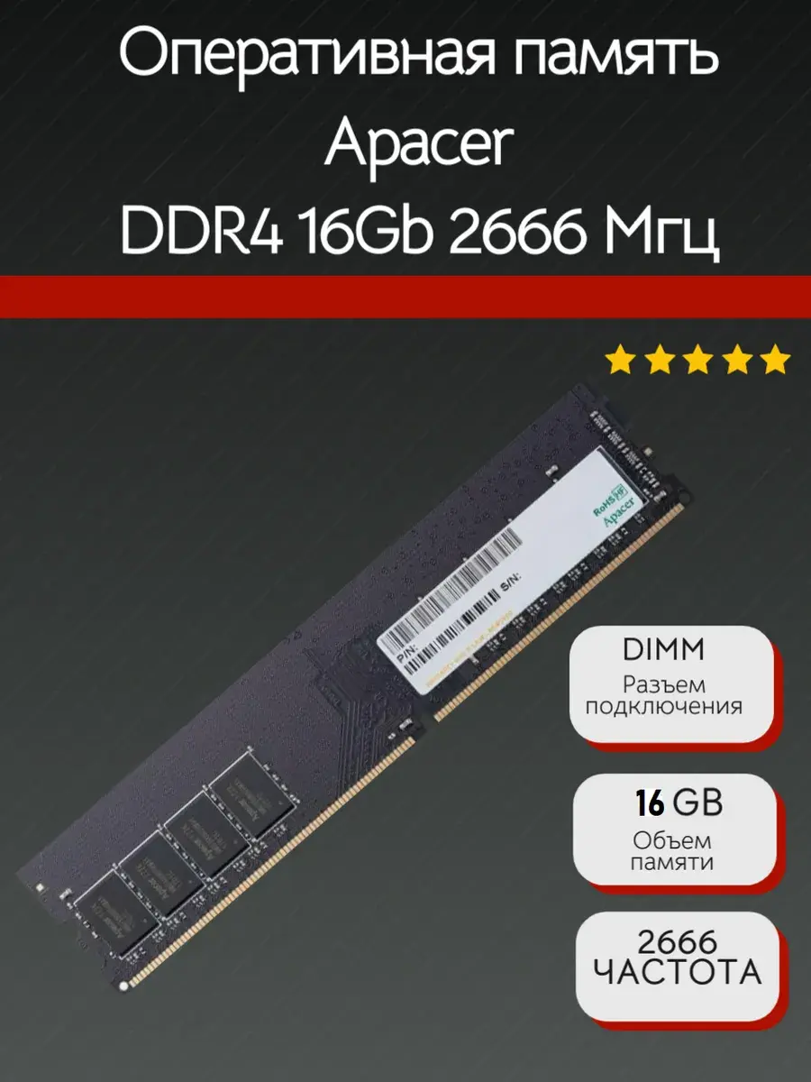 Оперативная память Apacer DDR4 16Gb 2666МГц — это надежный выбор для модернизации вашего компьютера или ноутбука. С увеличенным объемом памяти до 16 Гб вы сможете запускать ресурсоемкие приложения и игры без задержек, а также работать с несколькими программами одновременно без снижения производительности. Частота 2666 МГц обеспечивает высокую скорость обработки данных, что заметно ускорит работу системы. Установите оперативную память Apacer DDR4 и наслаждайтесь плавной и быстрой работой вашего устройства.