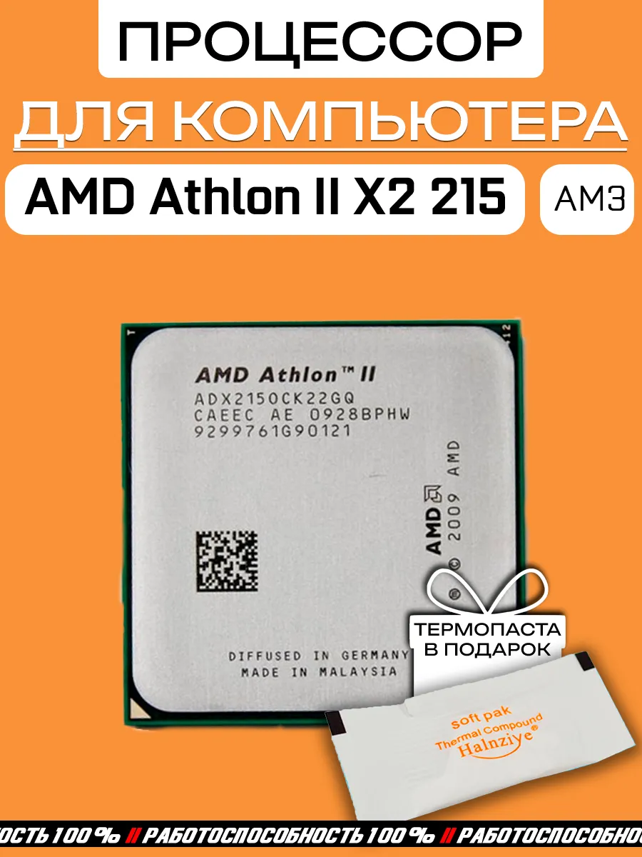 Процессор AMD Athlon II X2 215 AM3 ADX215OCK22GQ предлагает мощь и надежность для пользователей, стремящихся к эффективной производительности своих систем. Этот процессор от известного бренда AMD идеально подходит для тех, кто ищет баланс между ценой и качеством. Комплектация включает в себя не только сам процессор, но и термопасту, что позволяет сразу же установить его в вашу систему без дополнительных затрат и необходимости в поиске дополнительных аксессуаров.