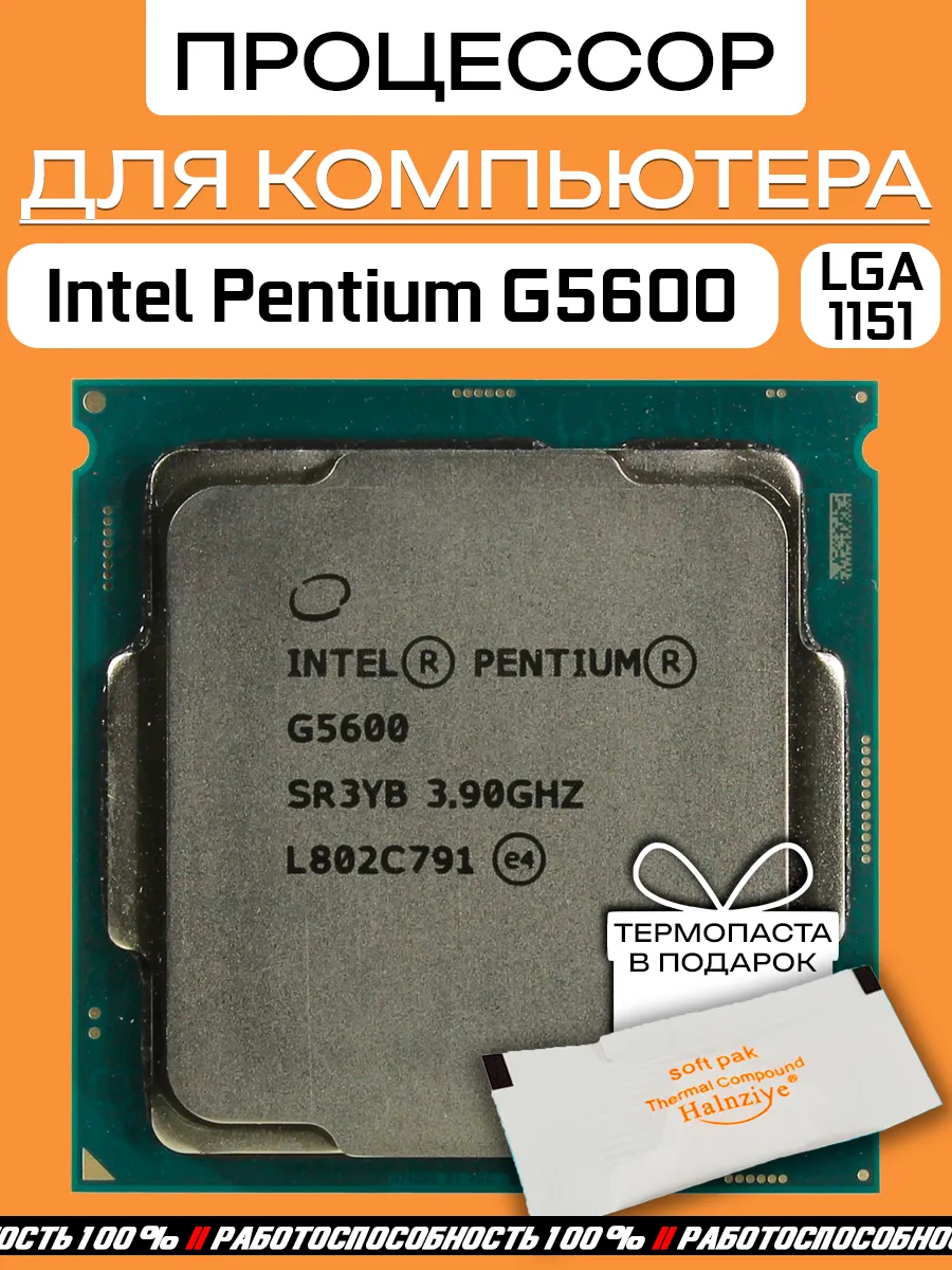 Представляем вам процессор Intel Pentium G5600 – идеальный выбор для тех, кто ищет надёжное и производительное решение для своего компьютера. Этот двухъядерный процессор с тактовой частотой 3.9 ГГц обеспечит плавную работу всех ваших приложений, от просмотра фильмов до работы с офисными программами. Встроенная графическая система Intel UHD Graphics 630 позволит вам наслаждаться качественной картинкой и комфортно работать с графическими приложениями. Процессор Intel Pentium G5600 совместим с сокетом LGA1151 v2, что делает его отличным выбором для апгрейда вашего существующего компьютера или сборки нового. Техпроцесс 14 нм гарантирует энергоэффективность и стабильную работу. С Intel Pentium G5600 вы получите отличное соотношение цены и производительности, чтобы ваш компьютер всегда был готов к любым задачам.