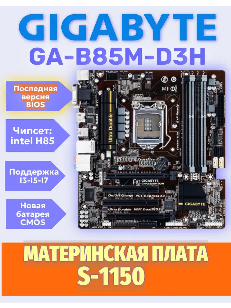 Материнская плата GigaByte GA-B85M-D3H — это надежная основа для сборки производительного компьютера. Сокет 1150 поддерживает процессоры Intel 4-го поколения, а чипсет H85 обеспечивает стабильную работу системы. Плата оснащена четырьмя слотами для оперативной памяти DDR3, что позволяет установить до 32 ГБ RAM с частотой до 1600 МГц. Для подключения накопителей предусмотрены шесть портов SATA, а для периферийных устройств — шесть USB 2.0 и два внутренних USB-коннектора. Форм-фактор Micro-ATX позволяет компактно разместить компоненты в корпусе.