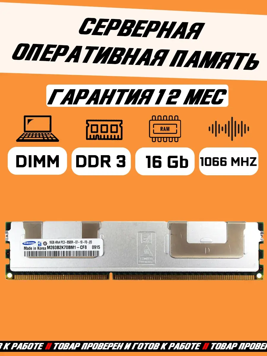 Модуль памяти для сервера DIMM DDR3 16gb, 1066Mhz, Samsung ECC REG 4RX4 PC3-8500R M393B2K70CM0-CF8
