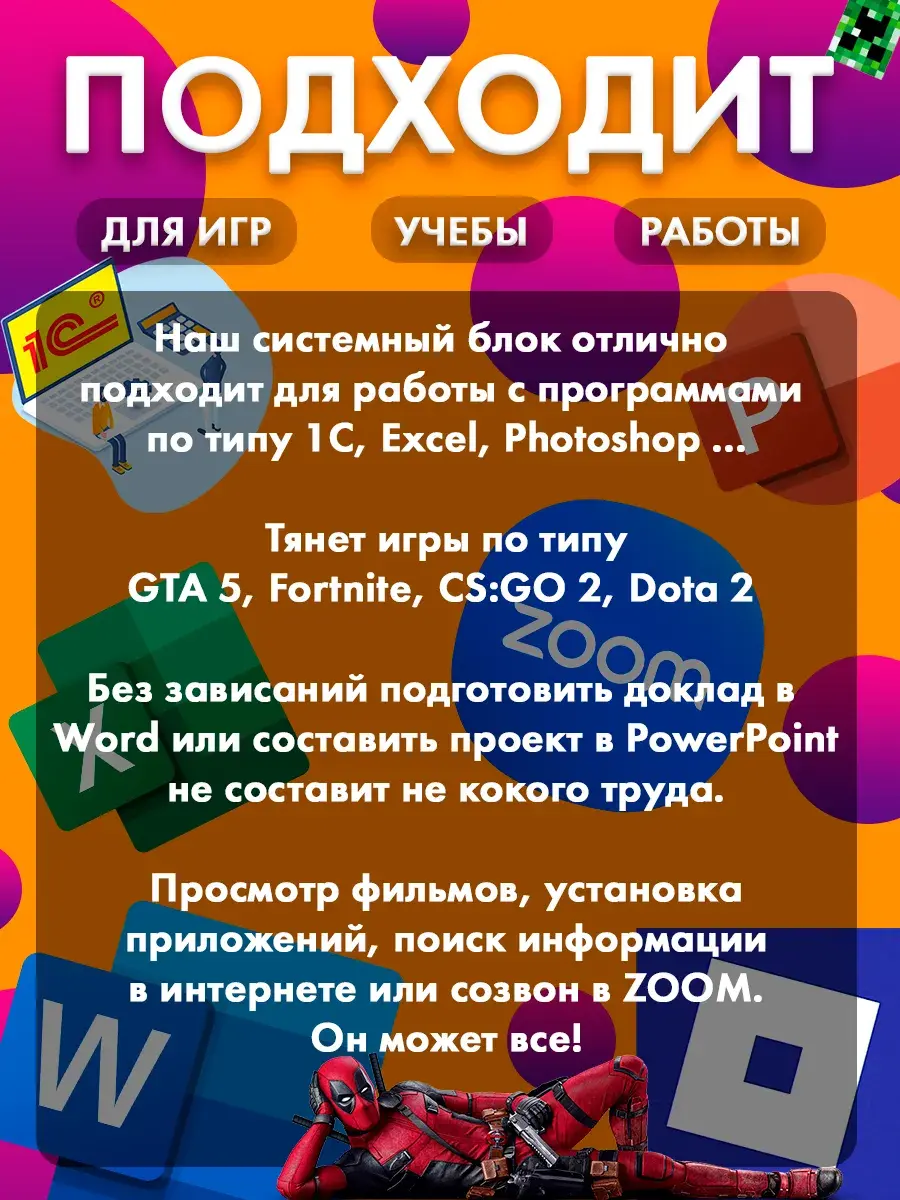 Системный блок DDR4 — это универсальное решение для тех, кто ценит качество и производительность. Он идеально подходит как для офисной работы, так и для домашних развлекательных нужд. Не упустите возможность сделать шаг в будущее технологий с компьютером, который полностью отвечает вашим требованиям!
