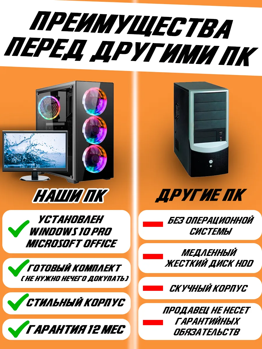 Системный блок с монитором, оснащенный процессором Intel Core i3, предлагает мощную производительность для выполнения повседневных задач и развлечений. С 16 ГБ оперативной памяти и 240 ГБ SSD накопителем, этот компьютер обеспечивает быстрое загрузку программ и операционной системы Windows 10 Pro, а также Microsoft Office для эффективной работы.