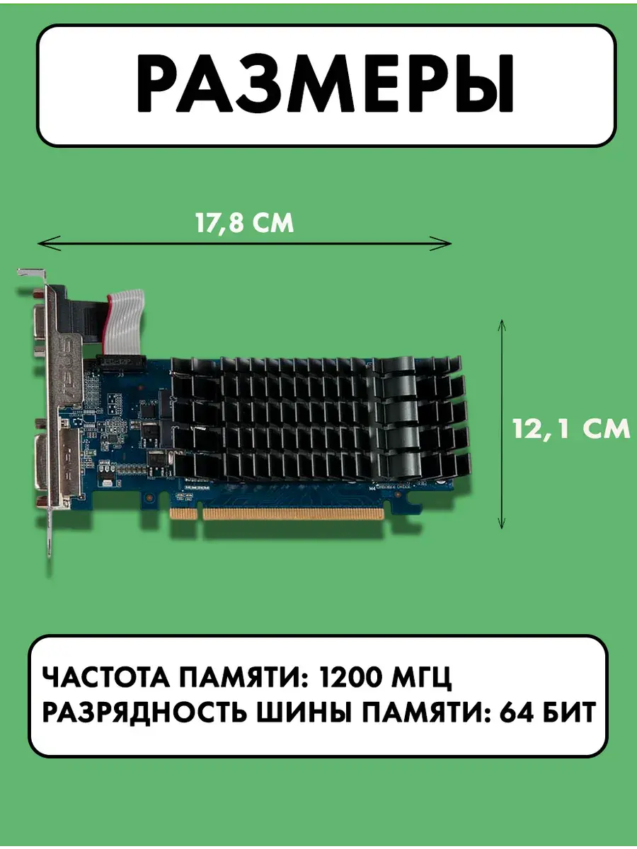 Видеокарта ASUS GeForce 210 — это отличное решение для тех, кто ищет доступный и надежный способ улучшить графические возможности своего компьютера. Эта видеокарта основана на архитектуре NVIDIA GeForce 210 и обеспечивает плавную работу с графически нетребовательными играми и приложениями. ASUS GeForce 210 оснащена 1 ГБ GDDR3 памяти, что позволяет ей справляться с воспроизведением HD-видео и обработкой графики в повседневных задачах. Компактный дизайн видеокарты позволяет легко установить ее в большинстве настольных компьютеров. ASUS GeForce 210 — это отличный выбор для пользователей, которые хотят повысить производительность своего компьютера без больших затрат.