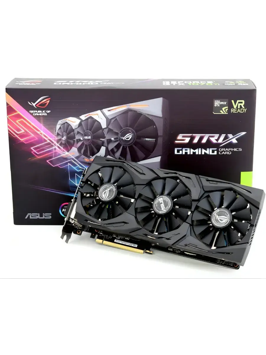 Видеокарта ASUS GeForce ROG-STRIX-GTX1070TI-A8G-GAMING — это мощный компонент для вашего игрового ПК, который обеспечит плавную и детализированную графику в современных играх. Ее стильный черный дизайн впишется в любой корпус, а передовые технологии NVIDIA GeForce GTX 1070 Ti гарантируют высокую производительность и реалистичное изображение. С этой видеокартой вы сможете наслаждаться любимыми играми на максимальных настройках графики и погрузиться в захватывающий игровой мир.