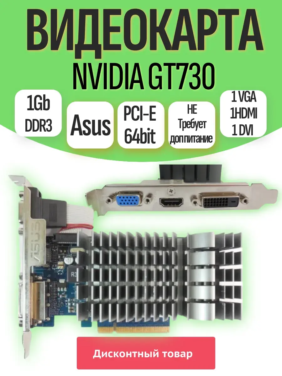 Видеокарта ASUS Nvidia GT730 1.0 Gb — отличное решение для тех, кто ищет доступный способ улучшить графические возможности своего компьютера. Эта видеокарта оснащена 1 Гб видеопамяти DDR3 и поддерживает HDMI, DVI-D и VGA, что позволяет подключать ее к различным мониторам и телевизорам. ASUS Nvidia GT730 1.0 Gb не требует дополнительного питания, что упрощает ее установку. Она станет отличным выбором для повседневных задач, просмотра фильмов в высоком качестве и нетребовательных игр.