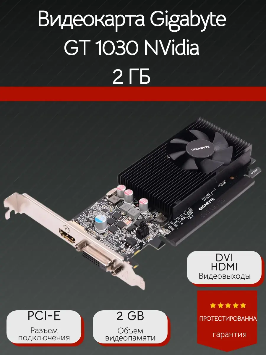 Видеокарта GigaByte GeForce GT1030 - компактная плата с низким энергопотреблением, которая выступит отличной альтернативой встроенным в центральные процессоры графическим решениям. Благодаря 2 Гб памяти GDDR4 и независимому видеоядру она имеет лучшую производительность, а малогабаритный форм-фактор позволит монтировать плату в небольшие корпуса, что будет актуальным при сборке офисных, учебных компьютеров, либо домашних мультимедийных систем. GigaByte GeForce GT1030 поддерживает технологии улучшения и обработки изображения, используемые в видеоадаптерах Nvidia более высокого уровня. Высокая надёжность видеокарты обеспечивается качественной элементной базой, а для любителей малошумных решений достоинством окажется пассивная, но эффективная система охлаждения.
