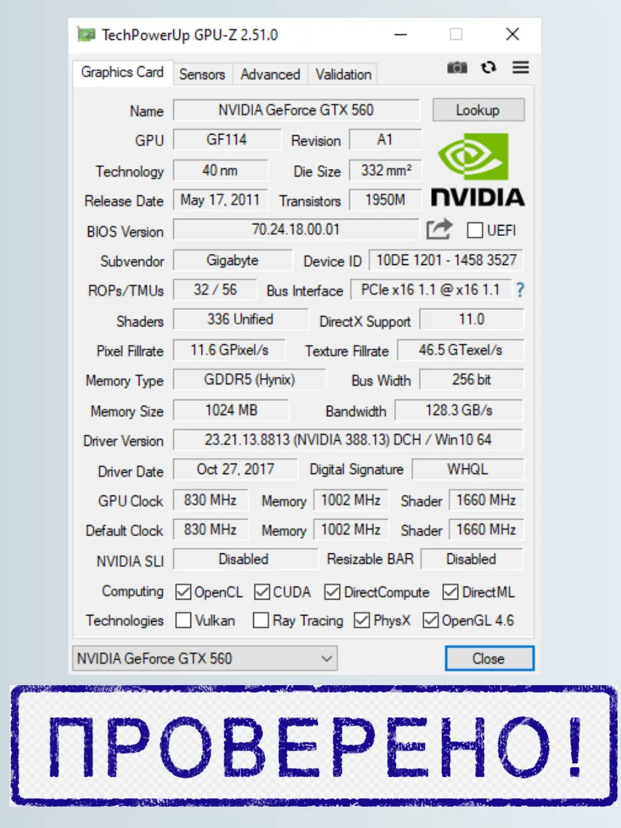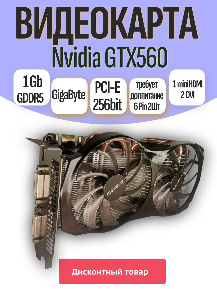 Видеокарта Gigabyte GTX 560 1.0Gb — отличное решение для геймеров, желающих получить плавную и детализированную картинку в любимых играх. Модель GTX560 с 1024 Мб GDDR5 видеопамяти и 256-битной шиной обеспечит высокую производительность и быструю загрузку текстур. Подключение к монитору осуществляется через два порта DVI-D и один Mini HDMI, что позволяет использовать различные типы дисплеев. Для работы видеокарты требуется блок питания мощностью не менее 500 Вт.