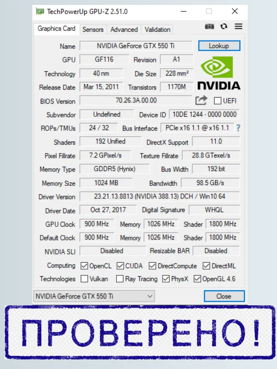 Видеокарта Palit GTX 550 Ti 1.0 Gb — отличное решение для геймеров, которые хотят получить качественную графику в любимых играх. Модель GTX550Ti с 1024 Мб GDDR5 памяти обеспечит плавную работу даже в ресурсоемких играх. Видеокарта оснащена всеми необходимыми разъемами: DVI-D, HDMI и VGA, что позволяет подключить ее к различным мониторам. Рекомендуемая мощность блока питания 500 Вт гарантирует стабильную работу видеокарты. С Palit GTX 550 Ti 1.0 Gb вы сможете наслаждаться яркими и детализированными изображениями в своих любимых играх.