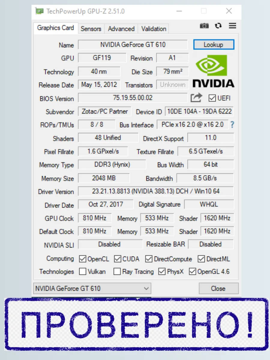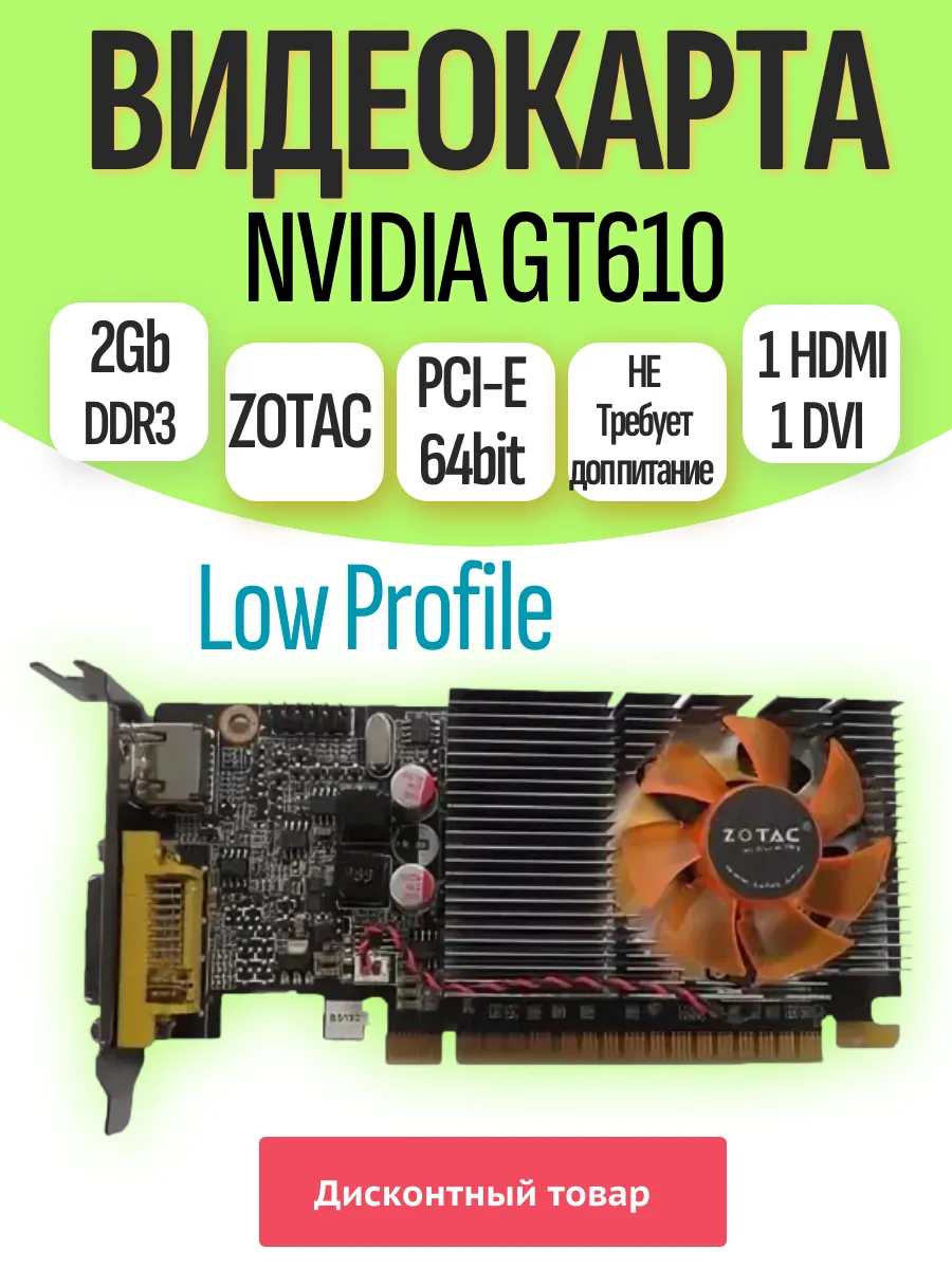 Видеокарта ZOTAC Nvidia GT610 2.0Gb LP — это отличное решение для тех, кто ищет доступный способ улучшить графические возможности своего компьютера в корпусе с низким профилем. Эта карта оснащена 2 ГБ DDR3 видеопамяти и 64-битной шиной памяти, что обеспечивает плавную работу в повседневных задачах, таких как просмотр видео, работа с графическими редакторами и нетребовательные игры. ZOTAC Nvidia GT610 2.0Gb LP не требует дополнительного питания и легко устанавливается в ваш компьютер. Наличие разъемов DVI-D и HDMI позволяет подключить карту к различным типам мониторов.